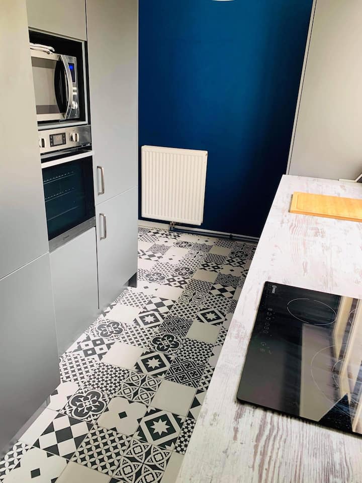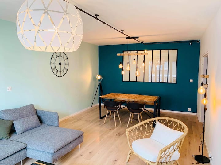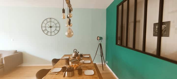 For business or personal travel, stay in this modern apartment of 116m² fully equipped, very functional and ideally located a 10-minute walk from the train station.