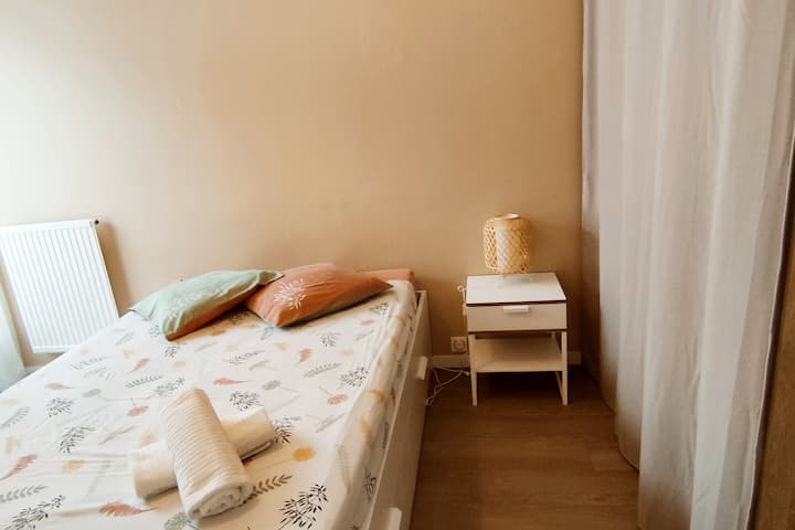 The apartment is located in a quiet building, on the 1st floor (no elevator). A parking space (secured in the residence) is offered (accessible only to vehicles of city types). Otherwise, many parking spaces (paying: from 9am to 12pm and from 2pm to 7pm – free on Sundays) are available at the bottom of the residence.