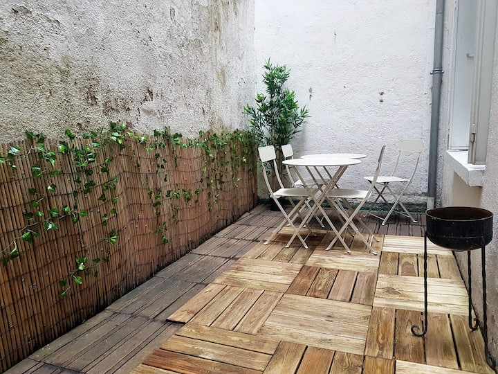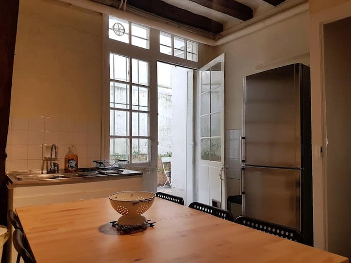 Note : the following shared spaces: a kitchen, the large living room on the 1st floor and an outdoor patio to eat outside or park your bike.