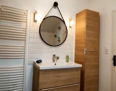 The bathroom is in free access and is shared by the 4 other rooms of the house.