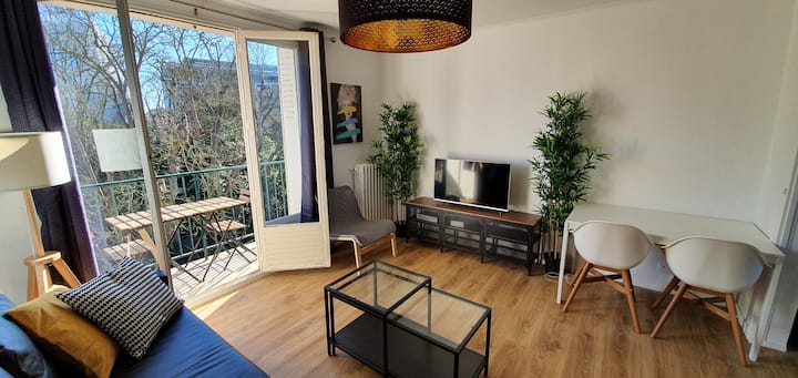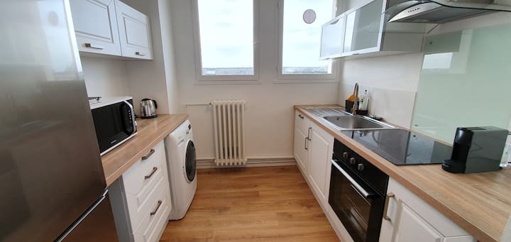 Please note : the following shared areas: toilet, kitchen, living room and balcony .The accommodation is very sunny (south exposure). It was completely renovated in 2020 and is fully equipped (washing machine, oven, microwave oven, very large refrigerator, Nespresso coffee machine, toaster, kettle, dishes and all the useful utensils for cooking.
