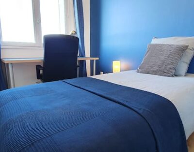 This accommodation on the 4th floor is based on the principle of Colocation. There are a total of 4 bedrooms including 3 single and 1 double. One of the single rooms has a private shower. And the others have access to shared bathroom facilities. The 4 bedrooms of this property of 75m2 are dedicated to a visiting clientele staying there for a few days or weeks. In total, the apartment can accommodate a maximum of 5 people.